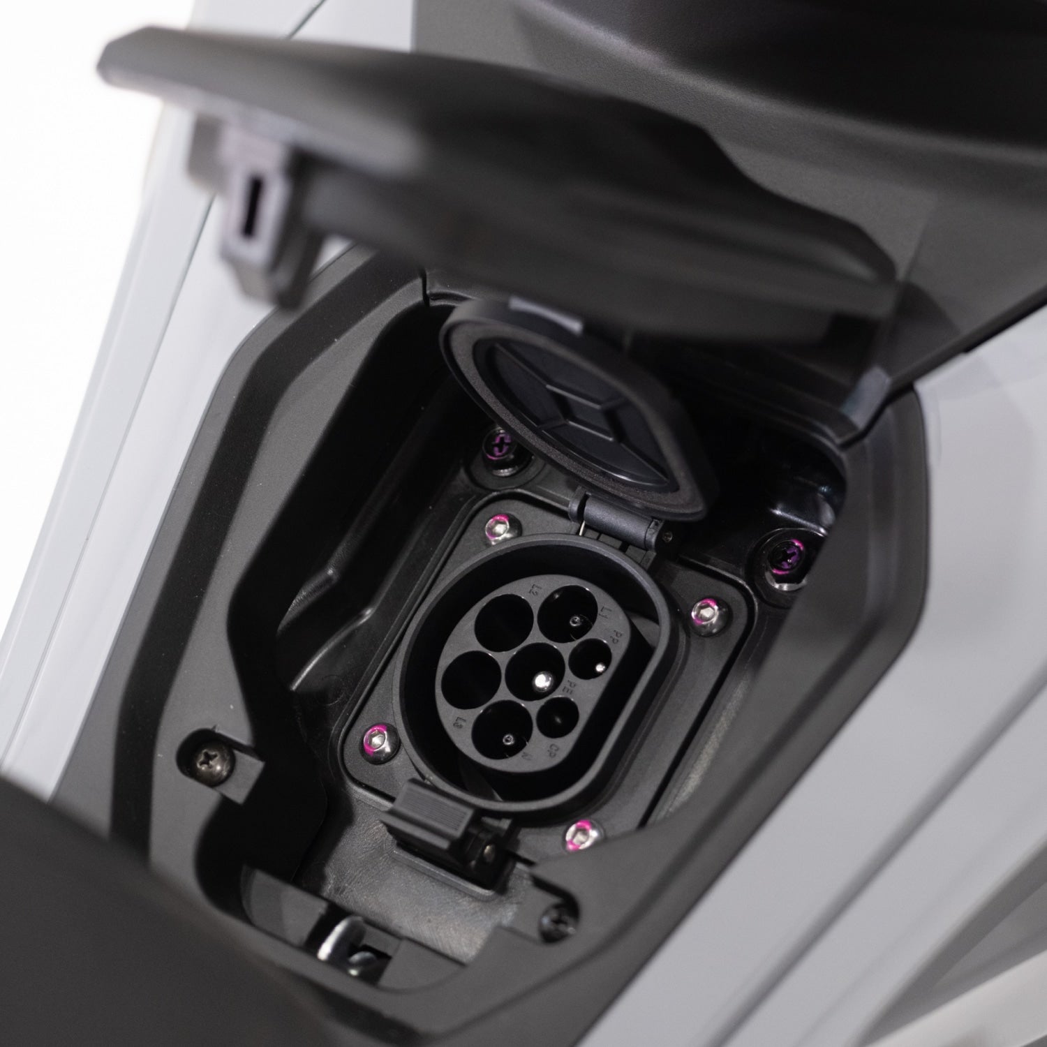 Retirez facilement la batterie légère de 16 kg, équipée de cellules LG, pour la recharger où vous le souhaitez, ou optez pour une recharge simultanée des deux batteries grâce à la prise Type 2.